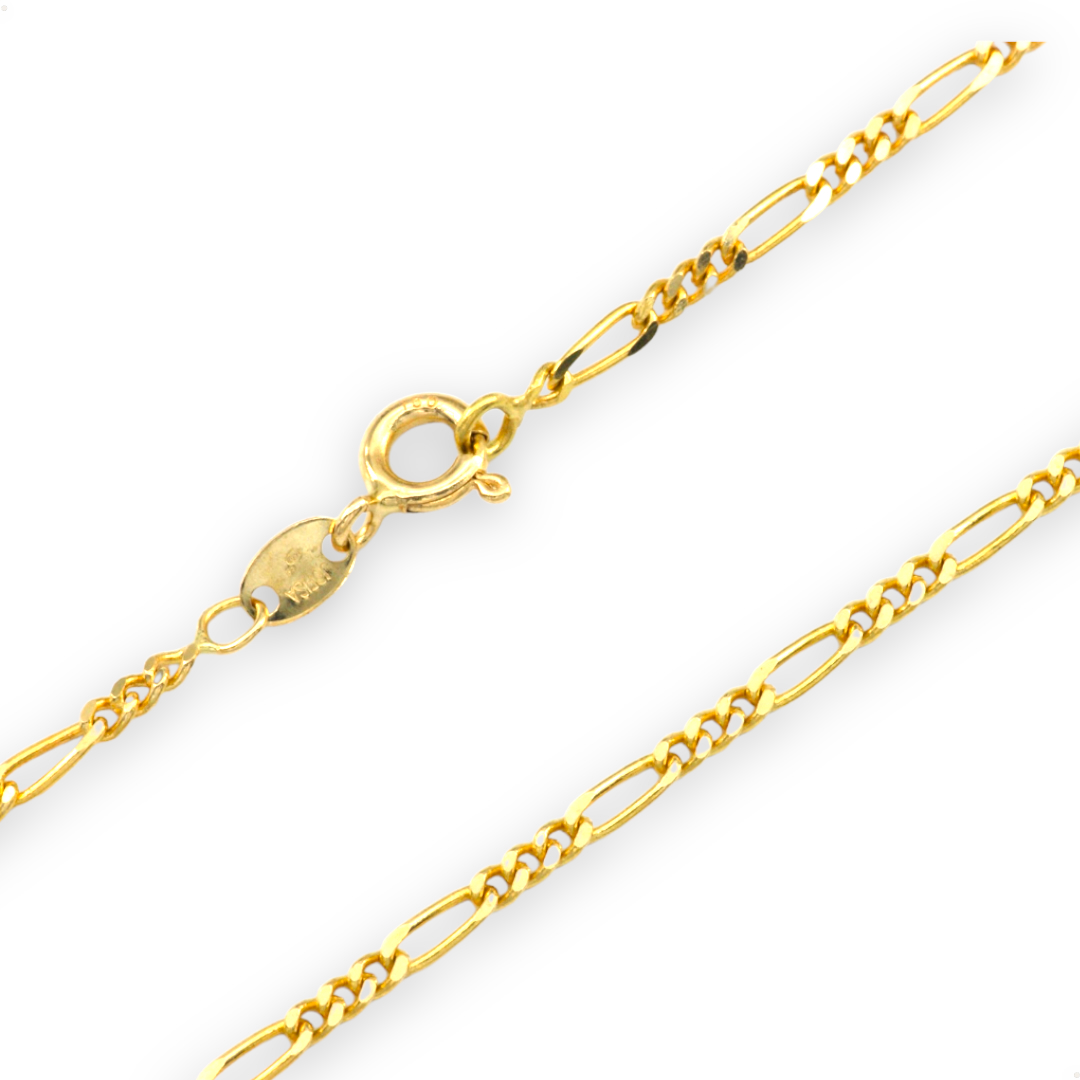 Cadena en Oro de 18 quilates con eslabón barbado 3x1 en acabado pulido. Cierre de reasa.