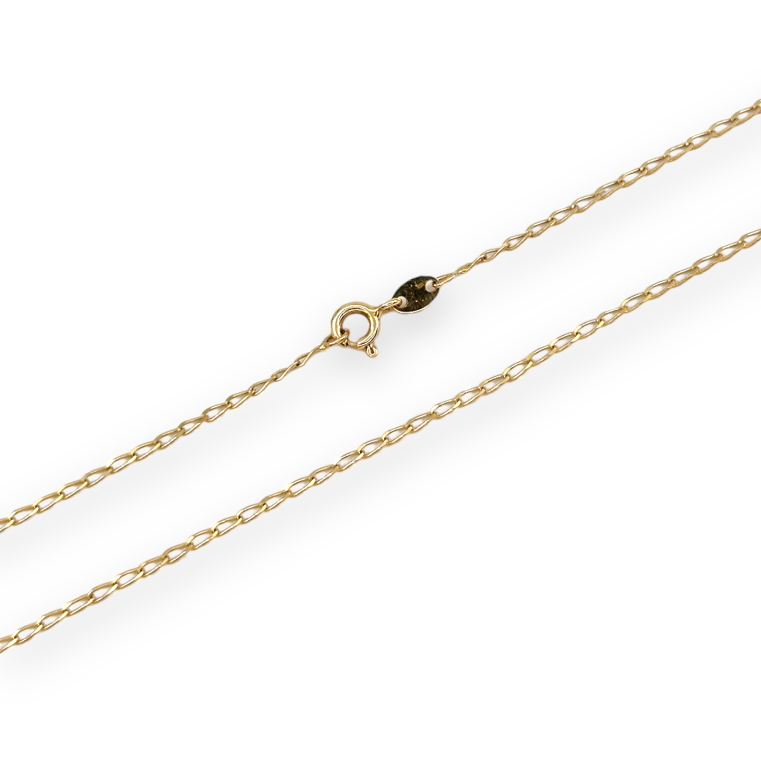 Bonita cadena fabricada en Oro de 18 quilates con eslabón bilbaino, acabado pulido y cierre de reasa. Medidas: – Peso: 2,55 gramos – Ancho: 1,4 mm – Largo: 49 cm