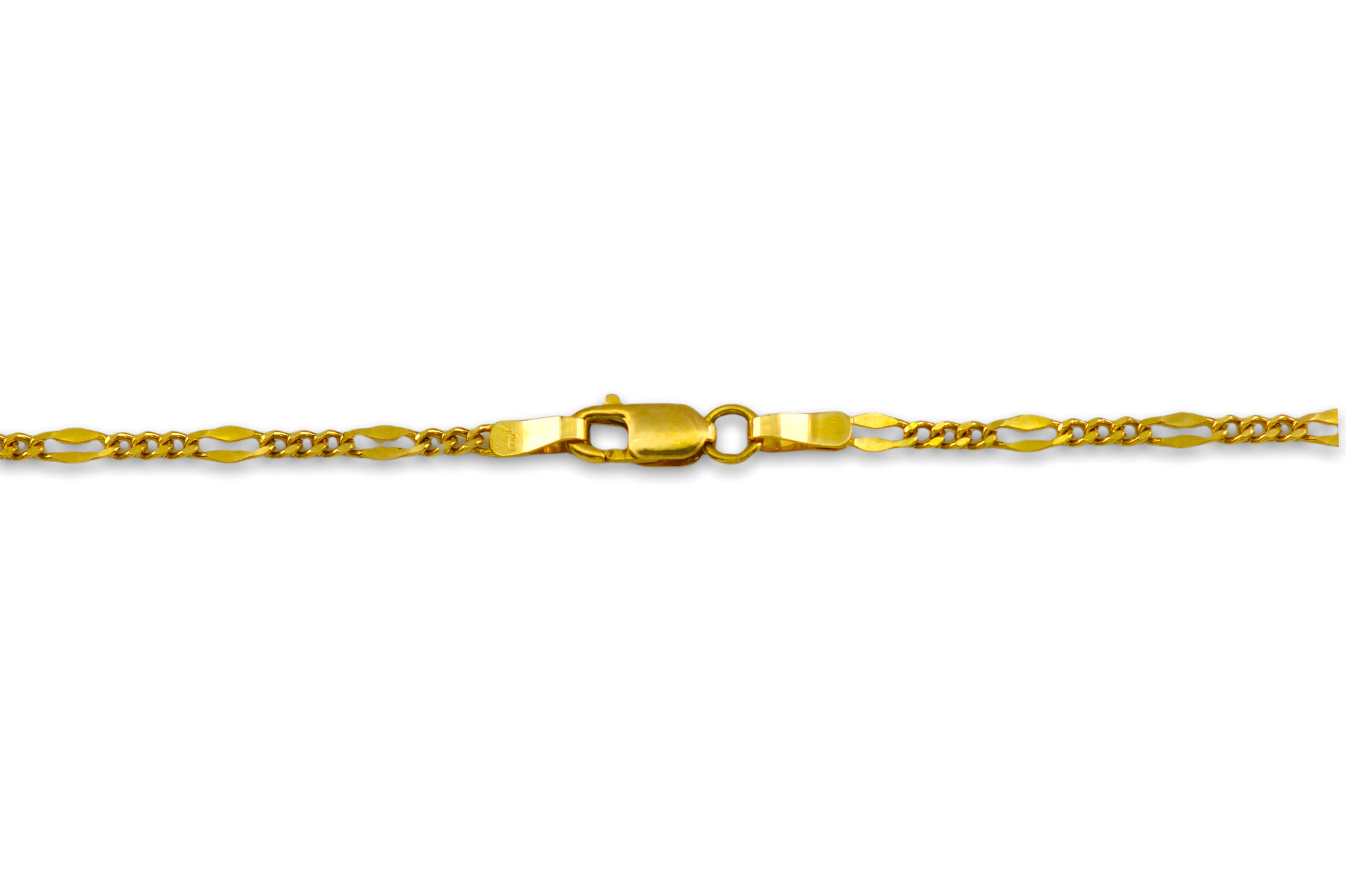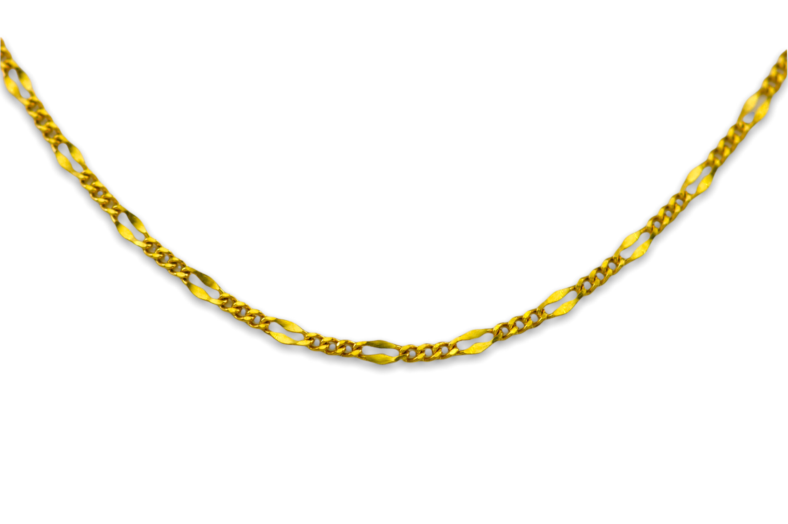 Cadena en Oro de 18 quilates con diseño de eslabón alterna estampada 3x1 con acabado pulido y cierre mosquetón.
