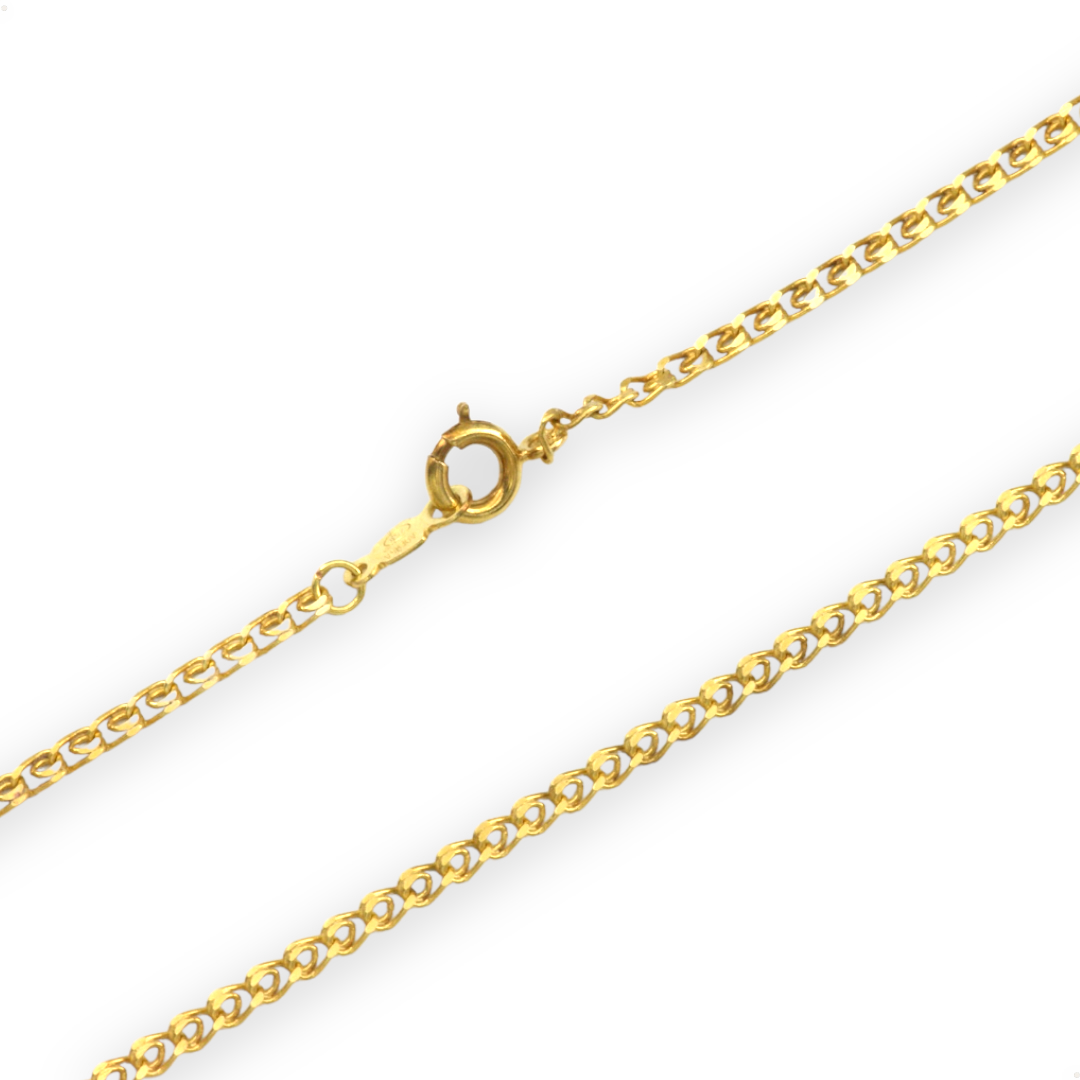 Bonita cadena fabricada en Oro de 18 quilates y diseño de eslabón love con acabado pulido. Cierre de reasa. Medidas: – Peso: 4,9 gramos – Ancho: 2,2 mm – Largo: 49,5 cm