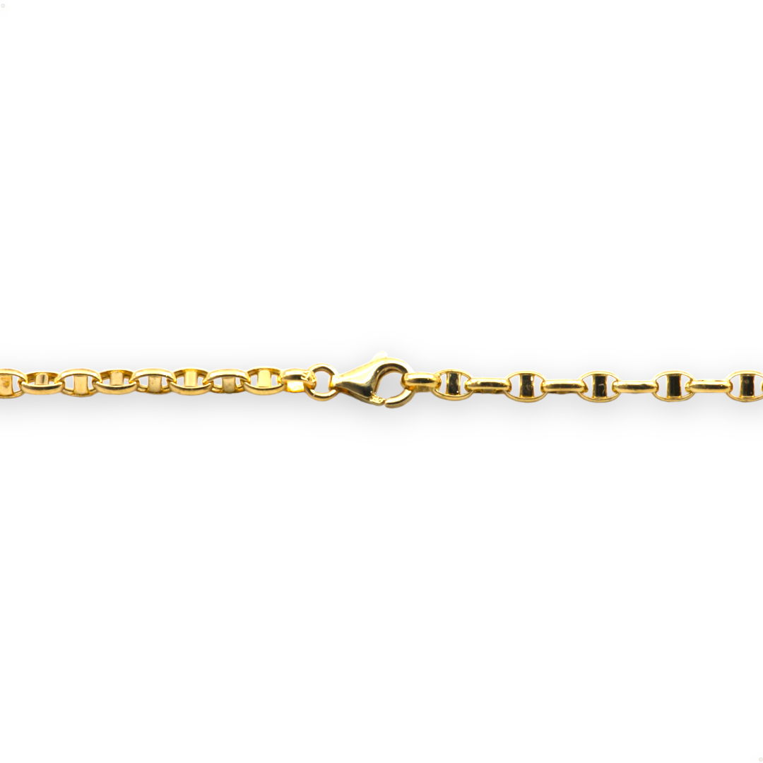 Cadena en Oro de 18 quilates con eslabón forzado con barra en acabado pulido. Cierre de mosquetón.