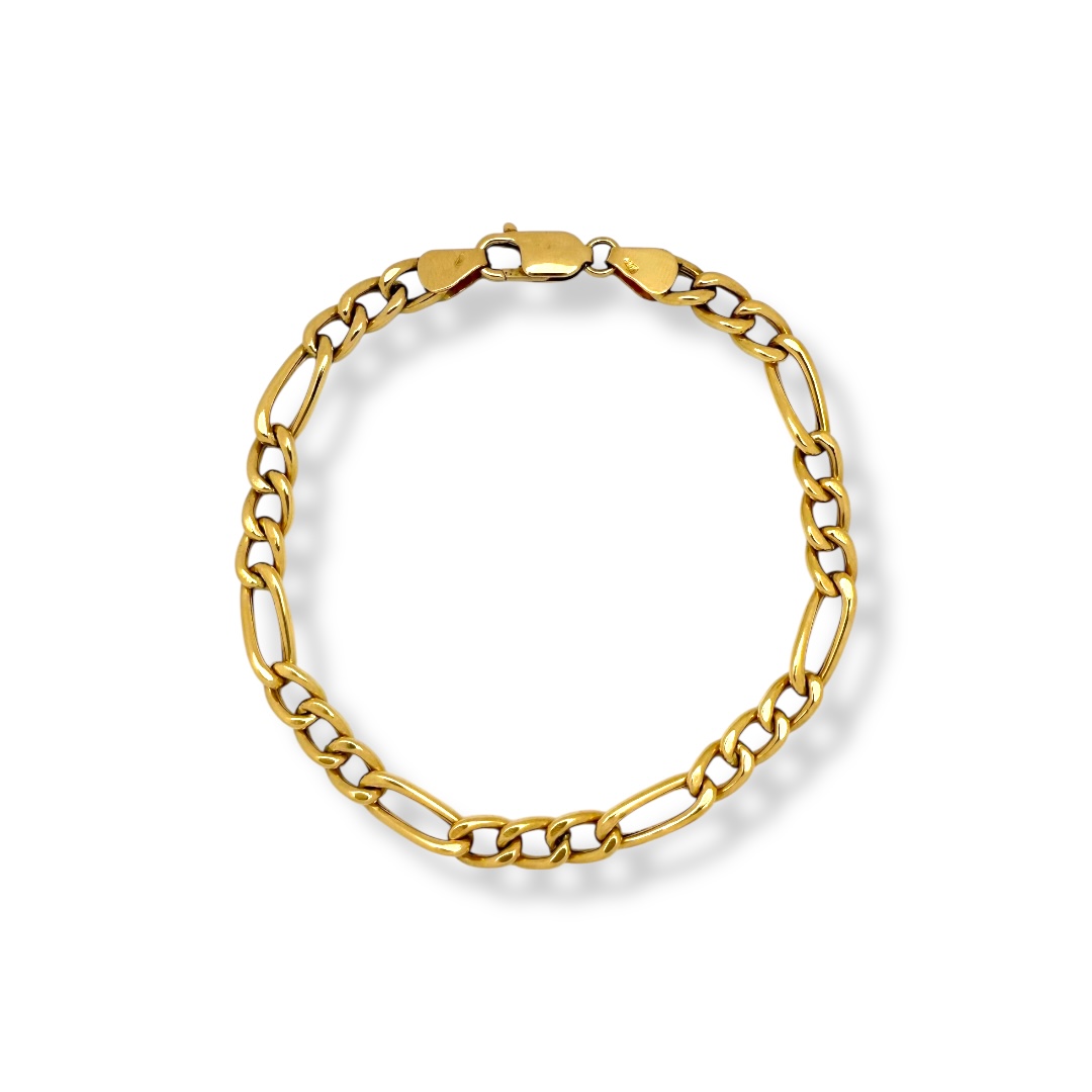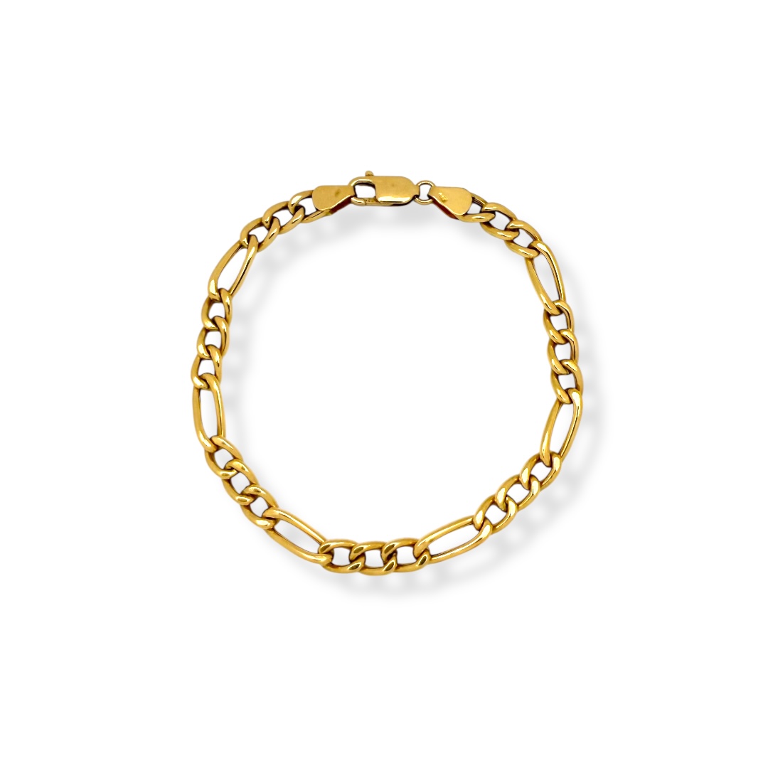 Pulsera en Oro de 18 quilates con diseño de eslabones alternos barbada 3x1 con acabado pulido y cierre de mosquetón.