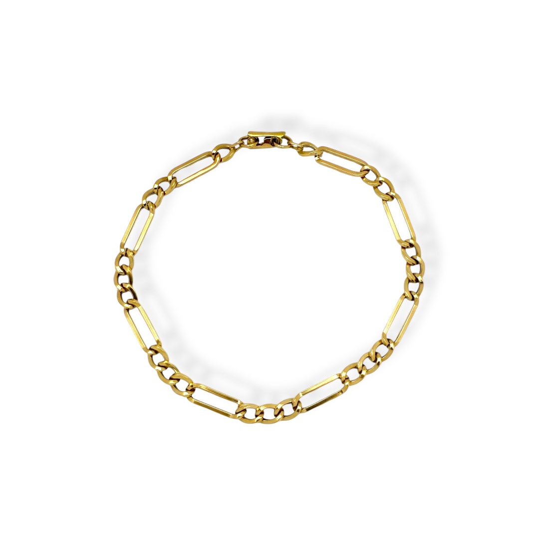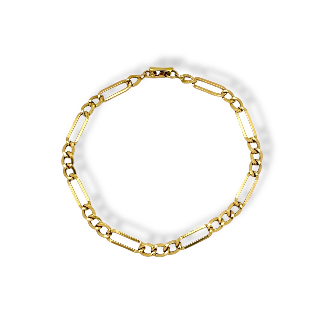 Pulsera en Oro de 18 quilates con diseño de eslabones alternos barbada 3x1 con acabado pulido y cierre de pato.