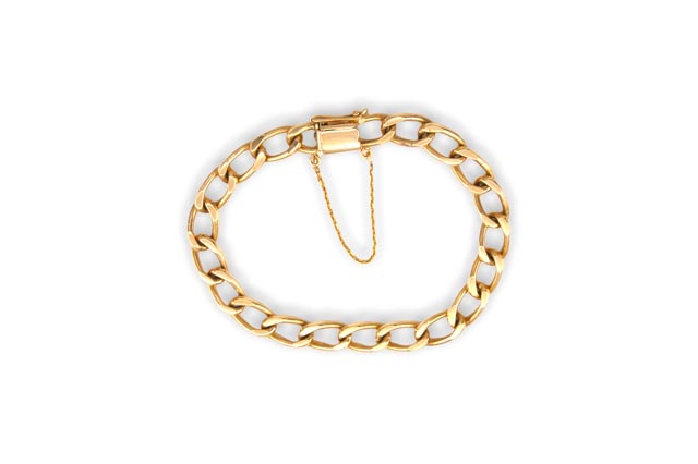 Pulsera de eslabón macizo de estilo bilbao en Oro de 18 quilates con detalle lineal tallado que da un toque diferente a la pieza y resaltando aún más el acabado pulido. Con cierre de caja y cadena de seguridad. Medidas: – Peso: 28,7 gramos – Ancho: 8 mm – Largo: 20 cm