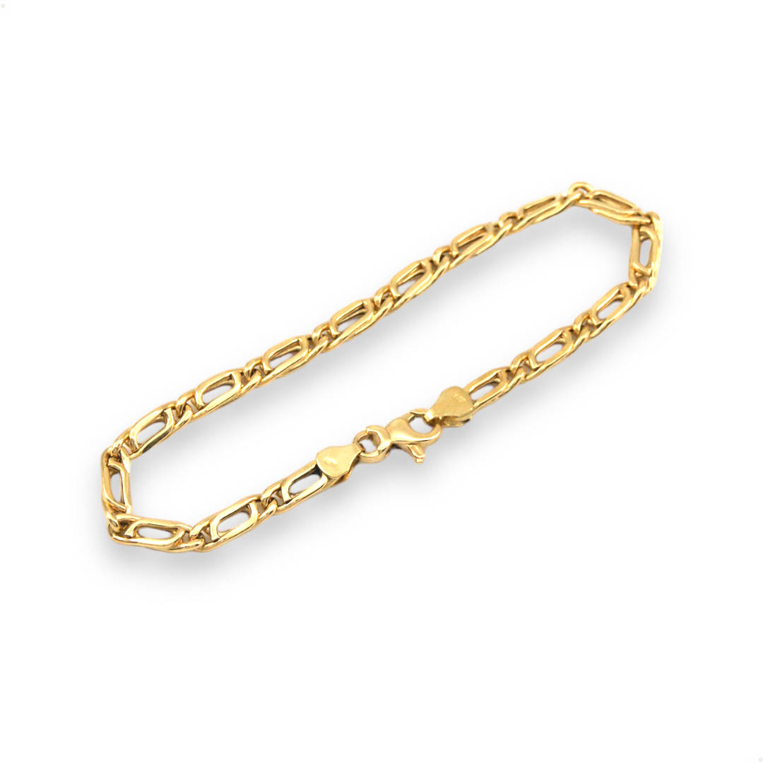 Bonita pulsera unisex fabricada en Oro de 18 quilates con diseño eslabón de Ojo de lince, acabado pulido y cierre de mosquetón.