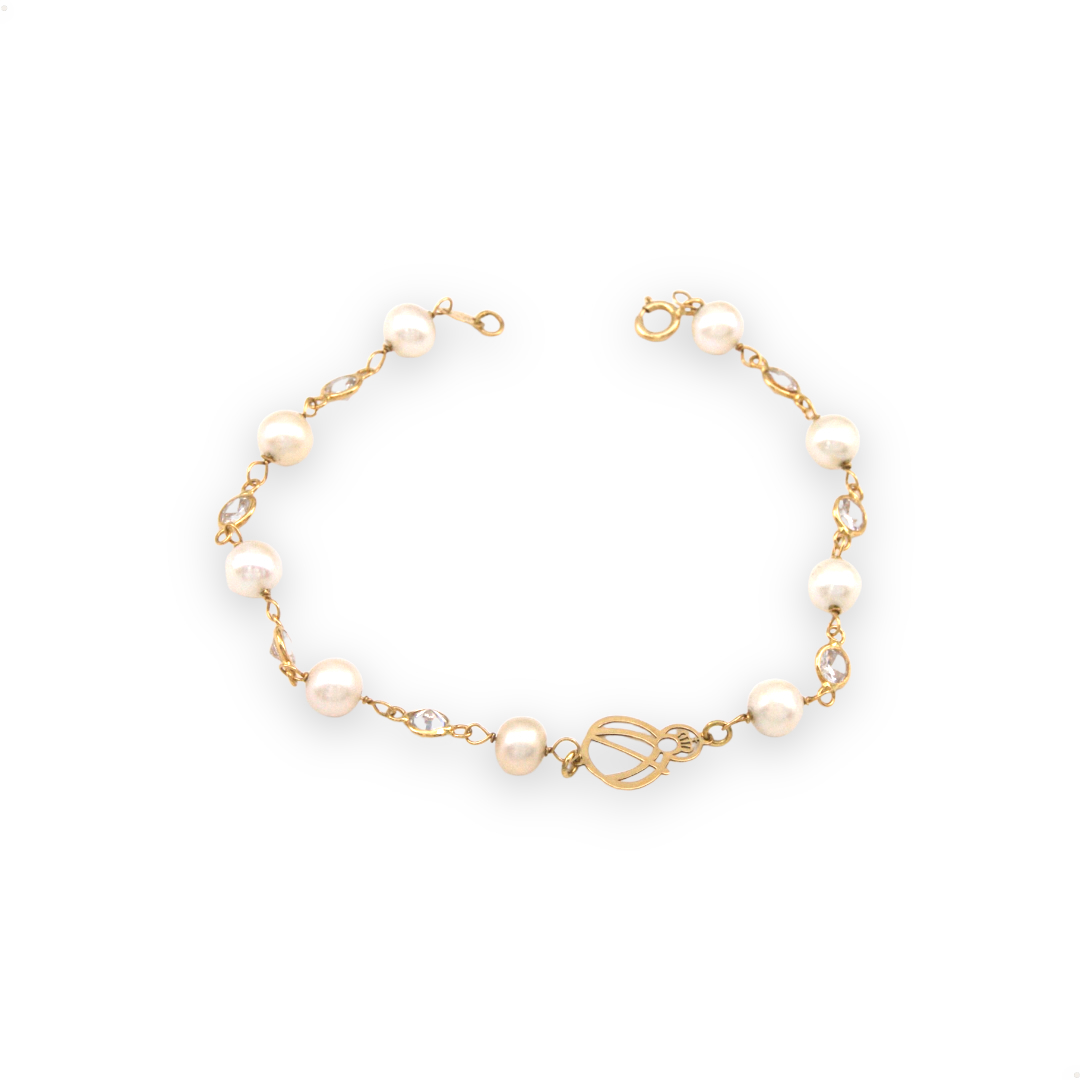 Pulsera Virgen de la Cabeza Perlas y Circonitas Oro 18k